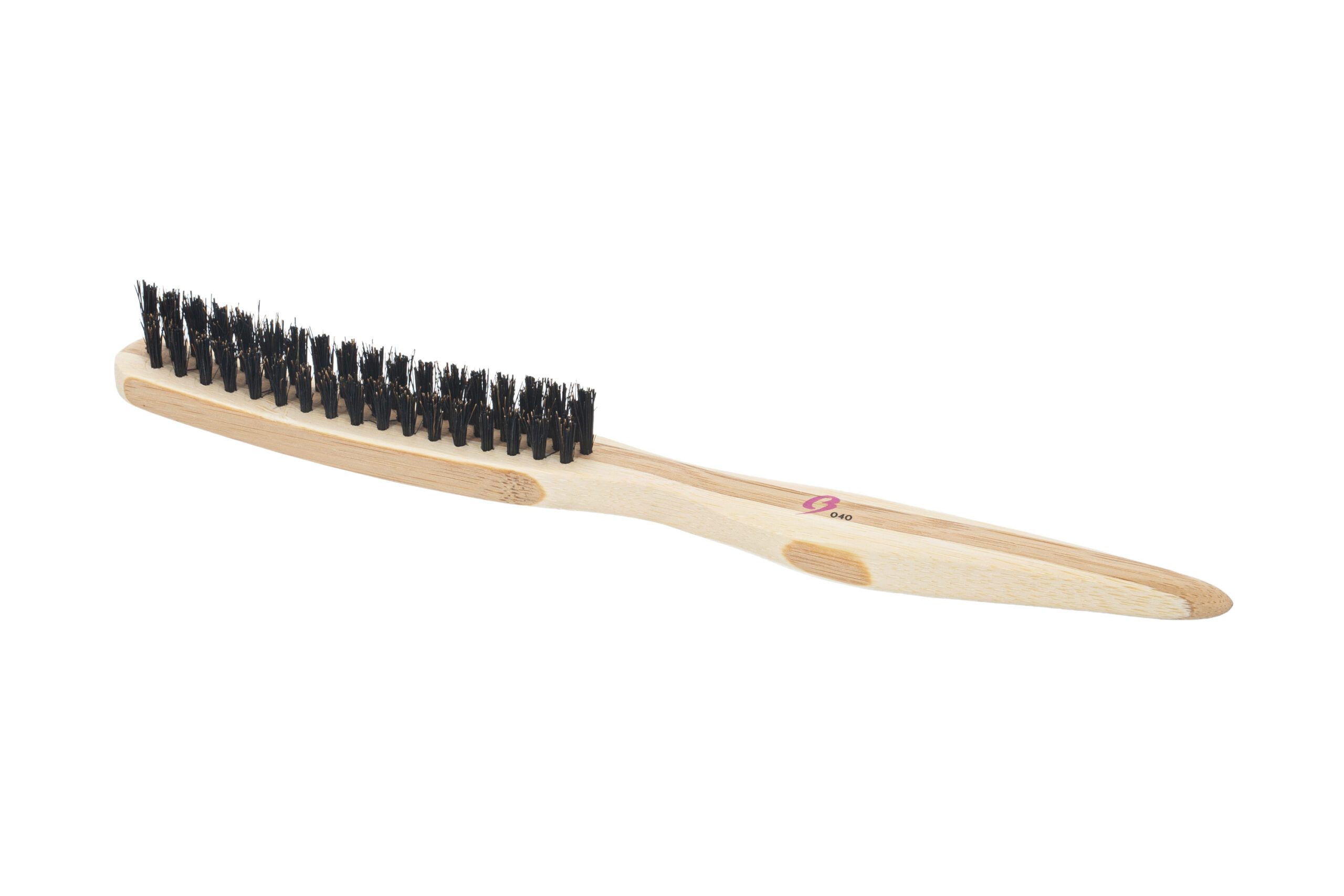 Hecho en madera en forma de punta sirve como una doble herramienta al estilista, fabricado con cerdas mixtas ( cerda natural y Nylon), es especial para los últimos detalles del peinado.